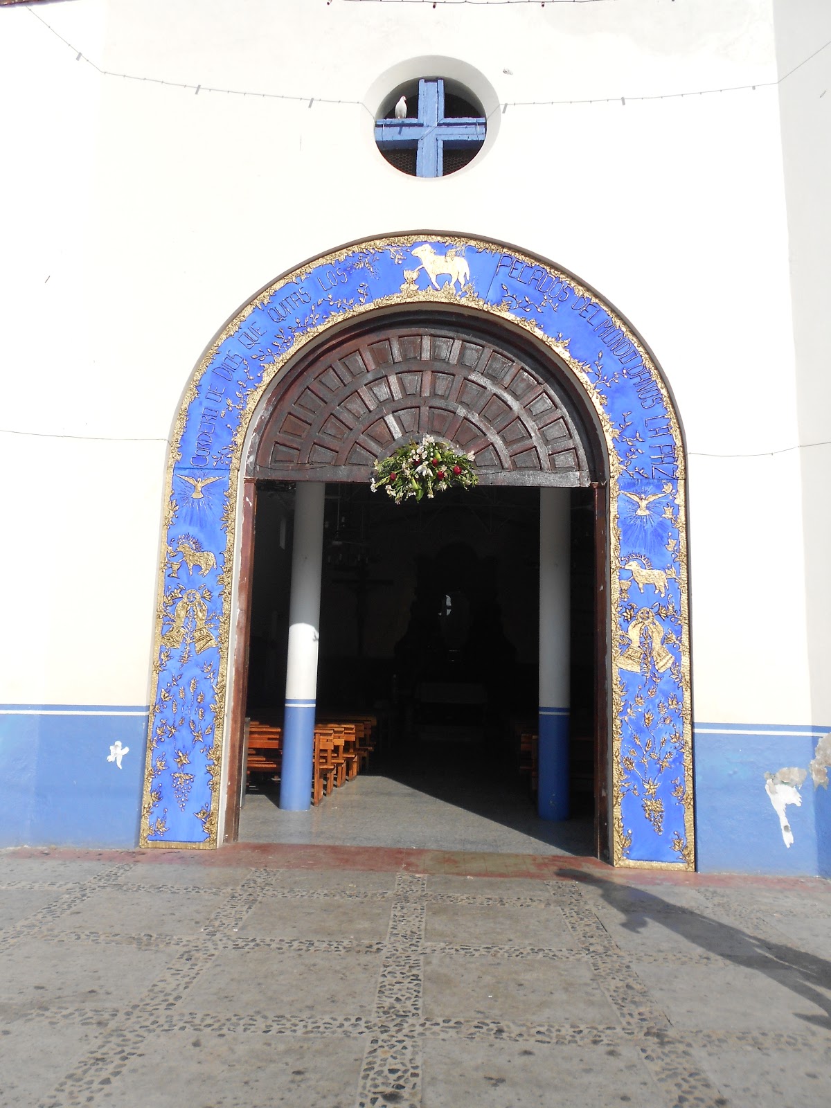 | Bright blue and gold leaf in a church in Zihuatanejo |