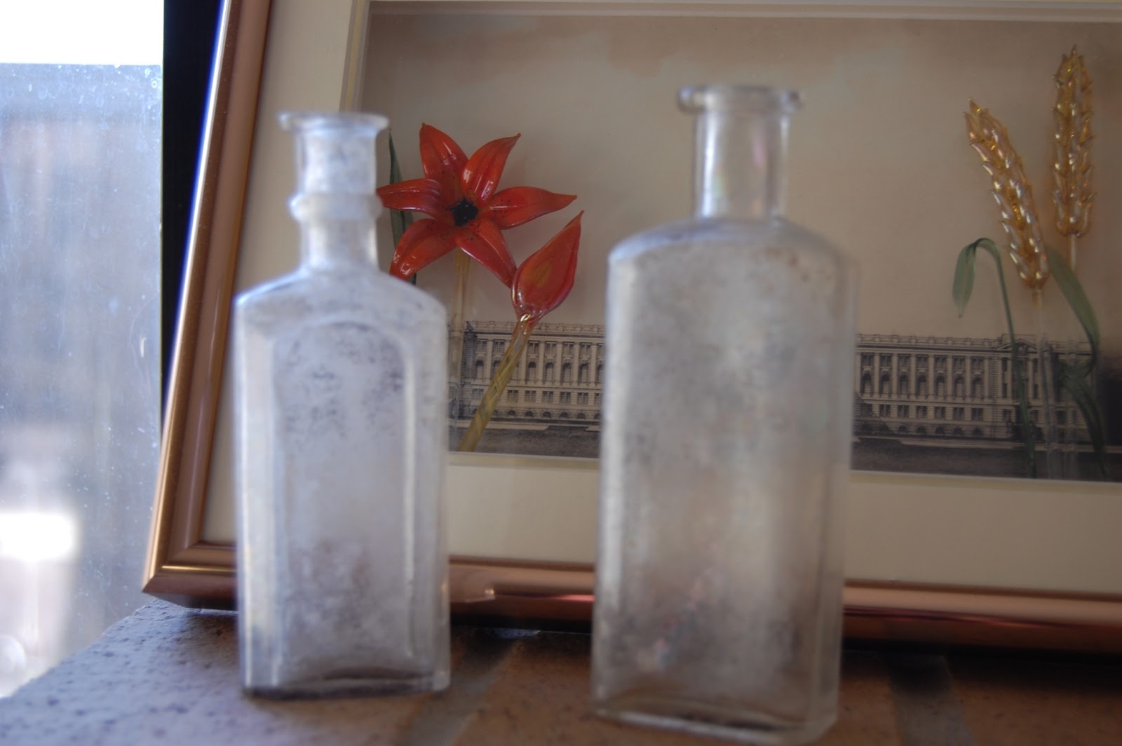 I found these glass bottles at the flea market a few weeks ago. I thought they were really cute, I have a ridiculous weakness for anything kitchen related, and I wanted to give them a makeover. I bought some turquoise glass paint from Amazon, and after a bit of trial and error, here is the finished product.