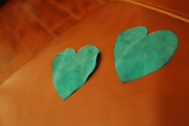 I used a piece of card stock to cut out a heart, and then traced it onto the fabric and cut out the shapes.