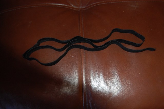 Then I awkwardly put it on/ figured out the delicate balance between having it stay up, and having it cut off all circulation. Once I decided on that, I sewed on the elastic to the other side at the right tightness, and voila.