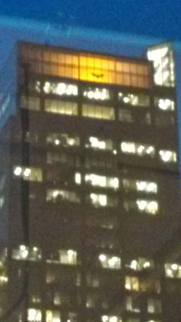 | The bat symbol in a building across the street from my office |