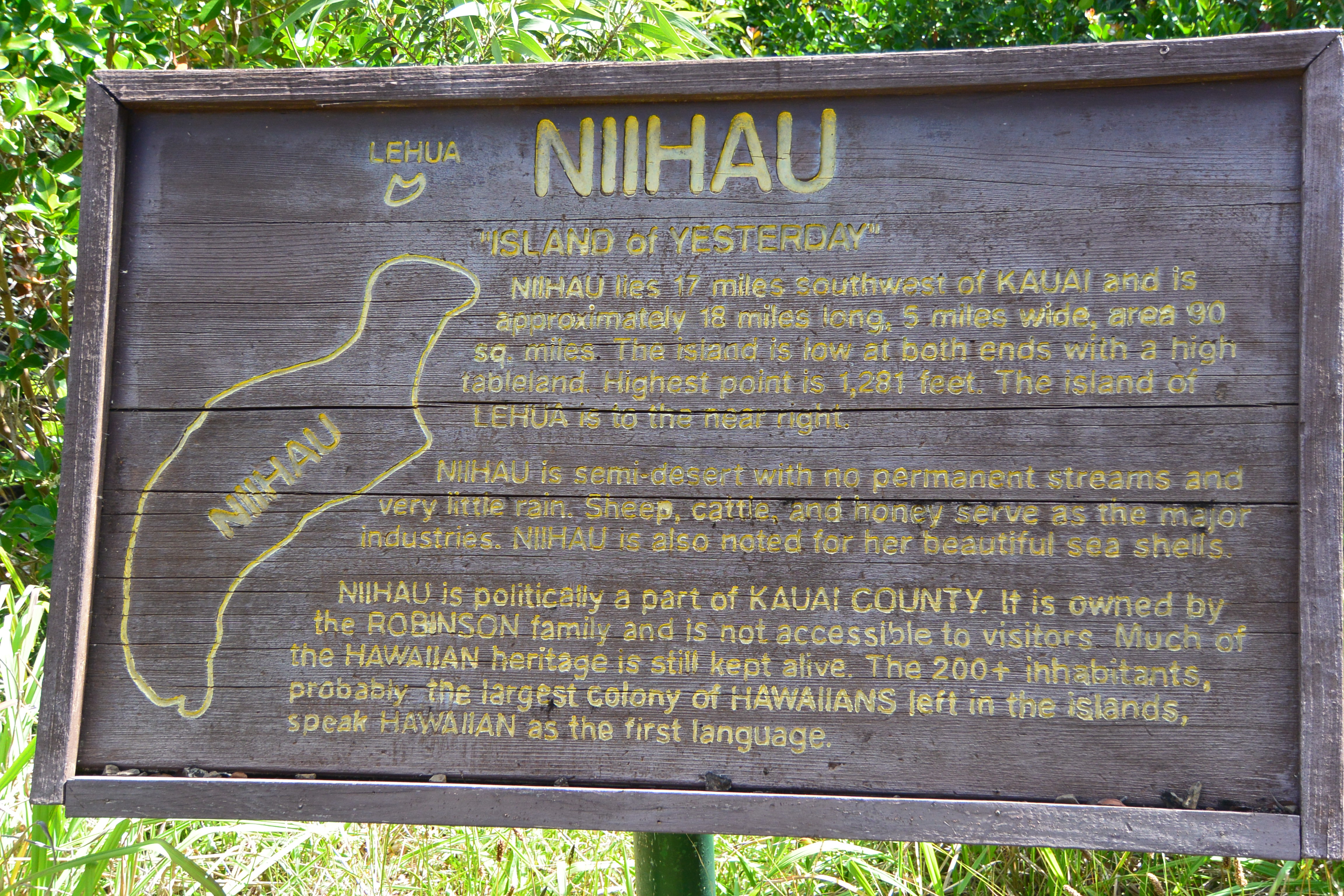Ni’ihau is another Hawaiian island, it’s called the Forbidden Island because nobody outside of the people who live there are allowed to go. You need a special written invitation to visit, and it’s very hard to get one.