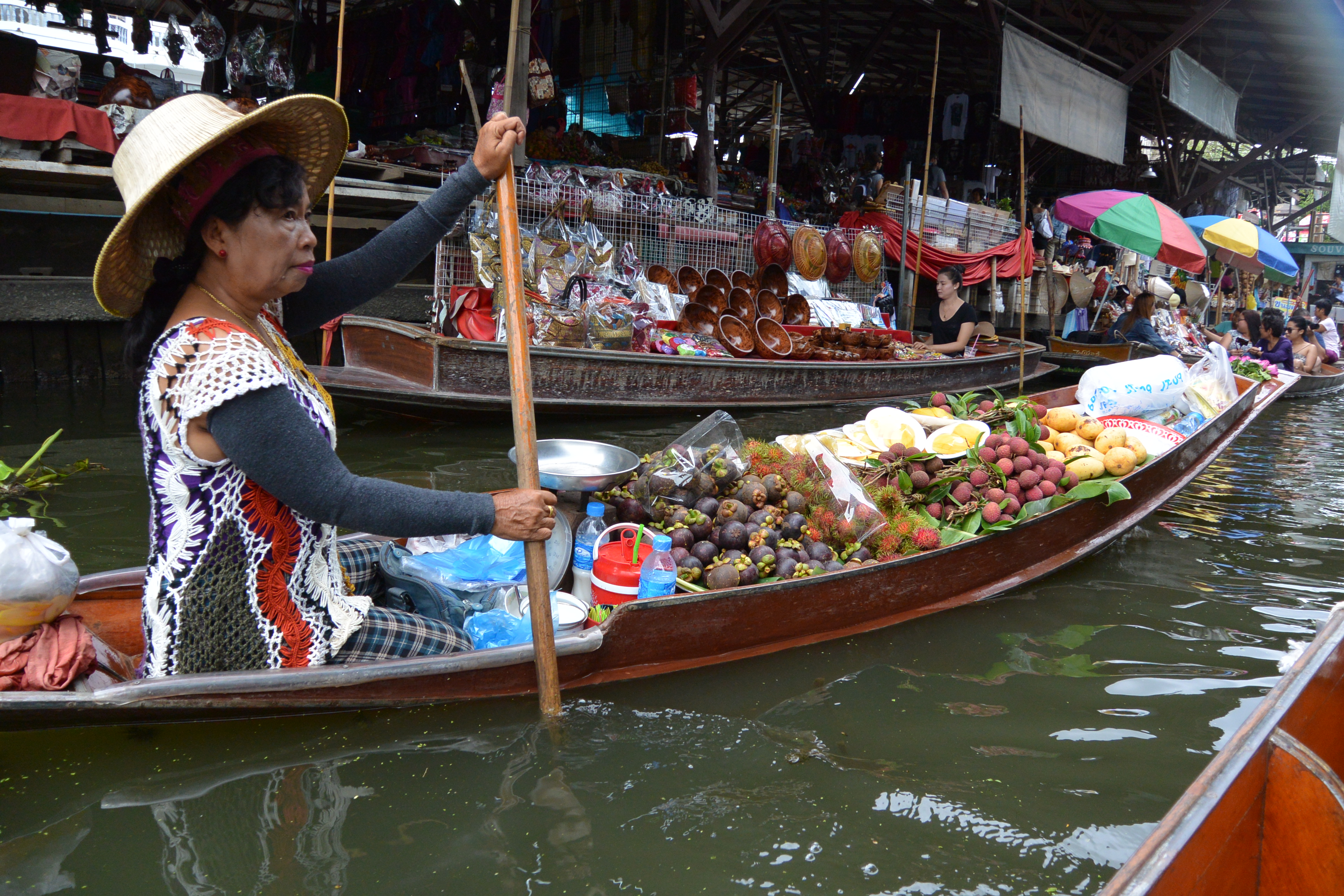 My favourite thing was the food vendors, there were a lot of people selling fruit and other snacks from their boats, and then there were people with full on restaurants, serving rice, noodles and BBQ meats right in the middle of the canals. They must be very well prepared (you wouldn’t exactly be able to run home if you forgot the pepper) and have impeccable balance.